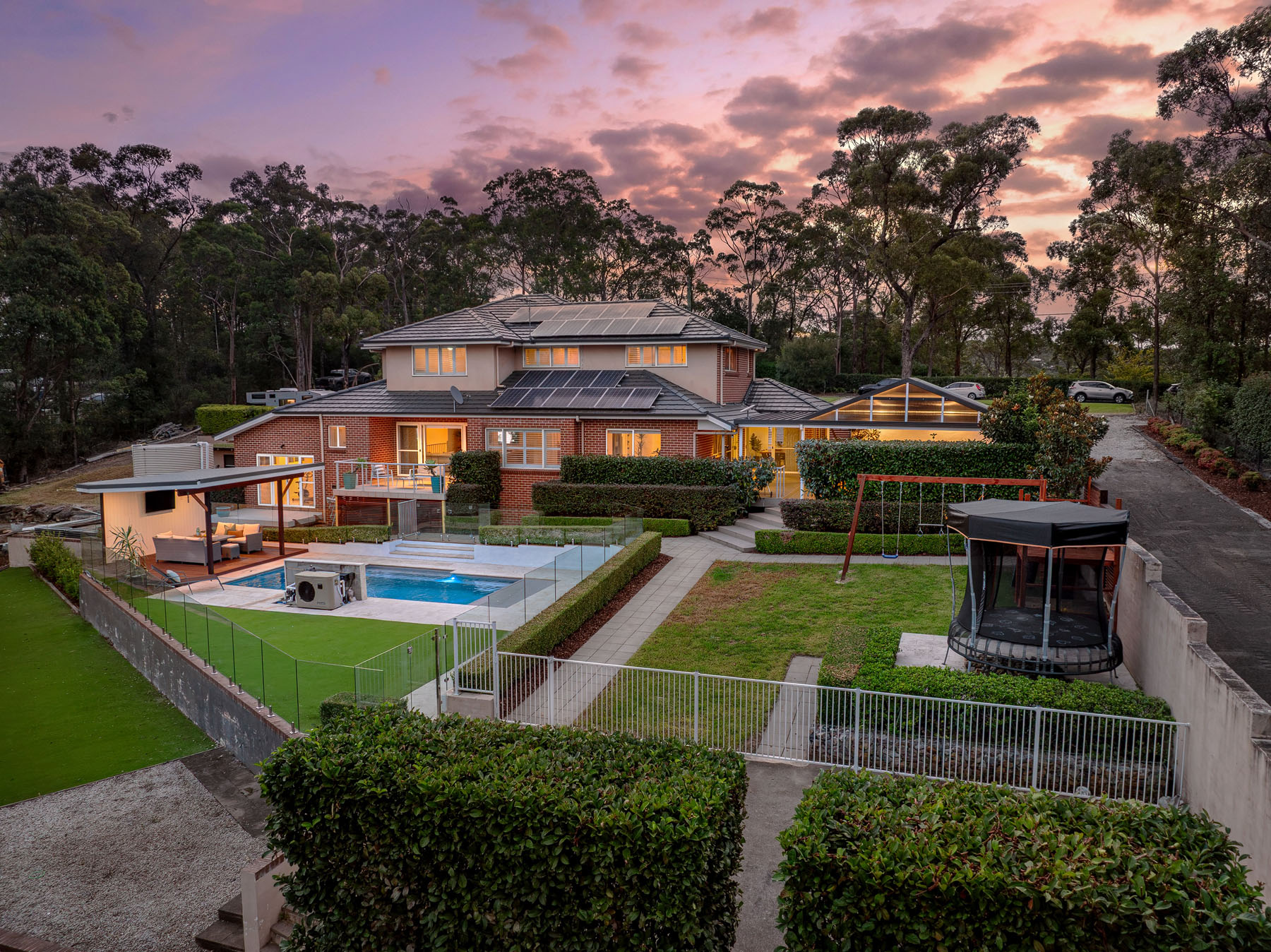 OTHER FEATURES: Ducted a/c, ceiling fans, statement pendant lighting, plantation shutters, expansive outdoor entertaining space with stone fireplace perfect for the cooler months, in ground swimming pool with stylish cabana, multiple indoor & outdoor living spaces, open plan feel, blend of tiled & plush carpeted flooring, immaculate landscaped gardens, instantaneous gas hot water, solar & eco water tank.